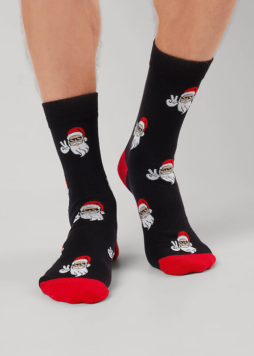 носки мужские с выделенным мыском и пяткой , с рисунками лицо деда мороза