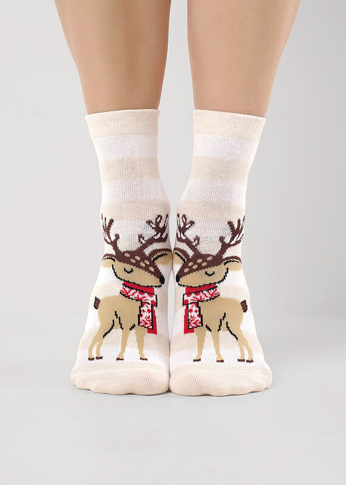 Носки женские с рисунком оленя в новогоднем шарфе