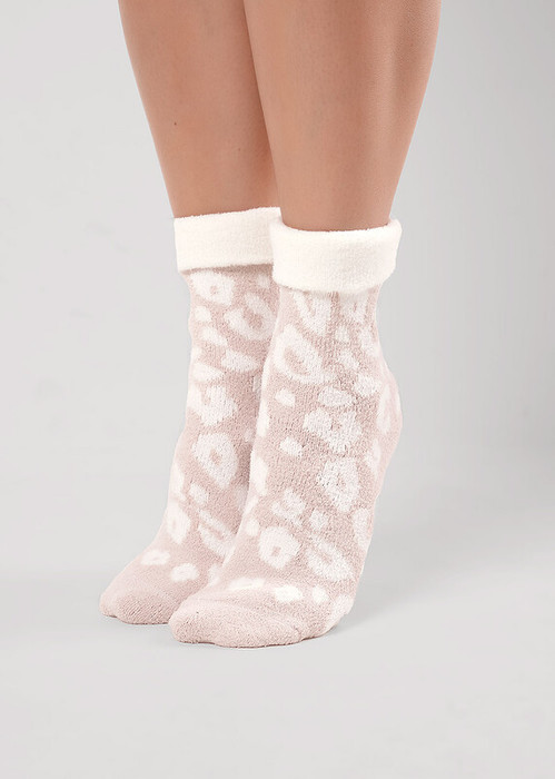 мягкие носки из "" травки"" с отворотом с леопардовым рисунком