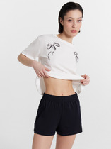 Набор одежды из хлопкового трикотажного полотна. Футболка прямого кроя, короткий втачной рукав, округлая горловина с обтачкой. Спереди принт. Внизу нашивка. Бриджи с поясом на внутренней резинке. Боковые карманы с отрезным бочком.