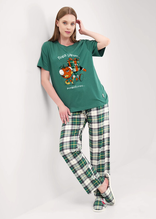 Совместные покупки Нижний Тагил Женская одежда Пижамы, халаты — Clever Пижама женская CLE LP15-1199/3 т.зелёный/молочный