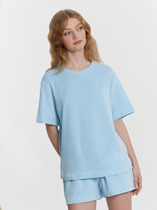 Набор одежды из хлопкового трикотажного полотна. Футболка прямого кроя. Короткий втачной рукав, нашивка. Округлая горловина с обтачкой. Спереди принт с пришивным помпоном. Шорты с поясом на внутренней резинке. Боковые карманы с отрезным бочком.