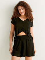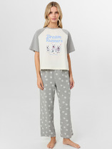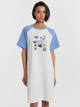 Набор одежды для дома и отдыха из трикотажного полотна. Футболка прямого силуэта из трикотажного полотна. Округлая горловина с обтачкой. Короткий втачной рукав. На полочке и спинке принт. Шорты с притачным широким поясом на резинке, принт.