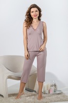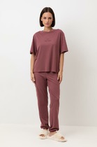 Набор одежды для дома и отдыха из трикотажного полотна. Футболка прямого кроя, горловина с обтачкой. Короткий целькроенный рукав. Спереди накладной карман с принтом вспенка. Шорты с поясом на резинке и киперной лентой. Боковые карманы с отрезным бочком.