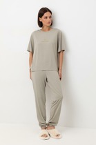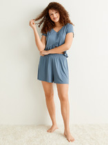 Пижама для дома и отдыха из хлопкового трикотажного полотна с добавлением модала. Майка с V-образным вырезом горловины. Узкая бретель с регулировкой длины. Горловина с внутренней обтачкой. Шорты с поясом на внутренней резинке.