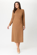 Платье без рукавов из фактурного трикотажного полотна джерси, длиной ниже колена. По горловине и пройме внутренняя окантовка. Отрезное по линии талии, боковые вставки со сборкой. По плечу завязки из окантовки. По спинке средний шов.