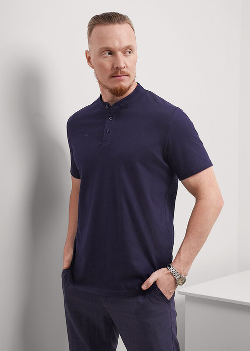 Футболка-поло с воротником-стойка и функциональной планкой на пуговицах, из хлопкового трикотажного полотна пике. Составит отличный комплект с брюками для школы и офиса.