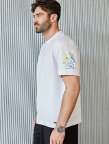 Джемпер с коротким рукавом среднего объема. воротник отложной вязаный, планка на петли и пуговицы. Низ рукава на вязаной манжете