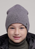 Стильная детская двойная шапка с отворотом, декорирована силиконовой нашивкой в центральной части. Идеально подойдёт для холодной осени- тёплой зимы.