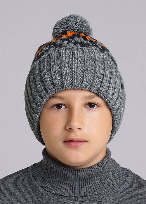 Clever Шапка детская CLE 433836ап флис меланж серый/оранжевый