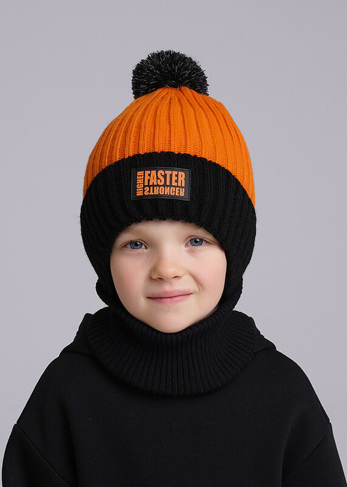 Clever Шапка детская CLE 433843ап флис чёрный/оранжевый