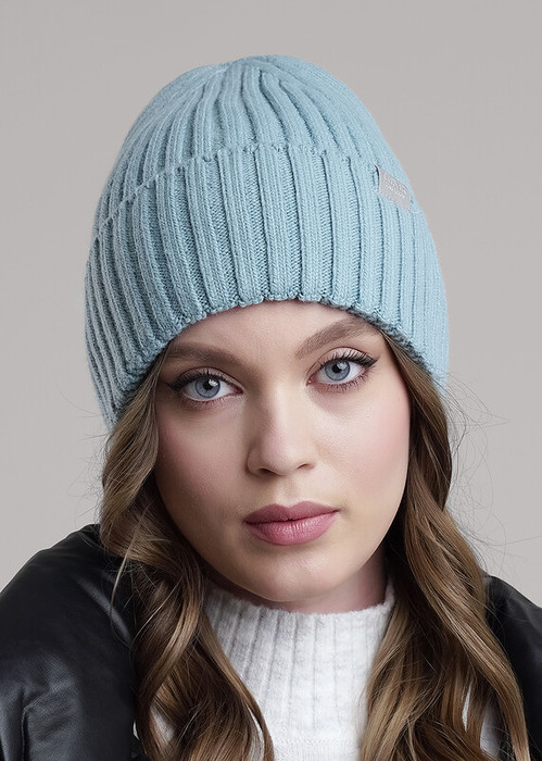 Шапка женская однослойная с отворотом, без подклада.Выполнена из высококачественной пряжи, декорирована стильной нашивкой в височной зоне. Станет не только отличной защитой от холода, но и модным аксессуаром.