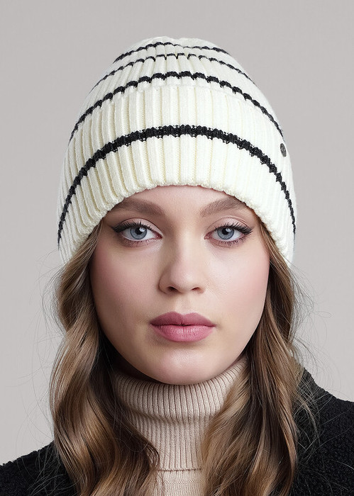 Clever Шапка женская CLE 454518вп молочный/меланж чёрный