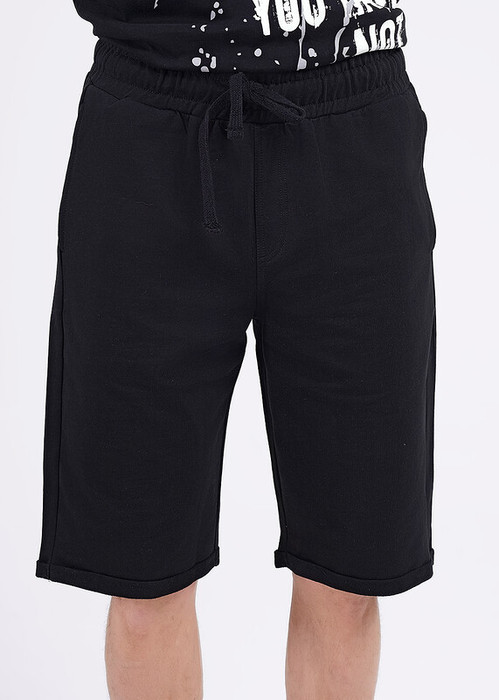 Шорты мужские из хлопкового материала с добавлением эластана на поясе со шнуром. По бокам карманы для функциональности. Низ изделия с подгибкой. Модель идеально подойдет для повседневного использования.