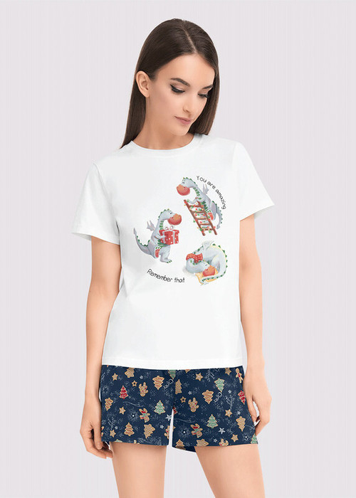 Clever Шорты женские для дома CLE LSH13-1068/1у т.синий/св.коричневый