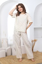 Шорты для дома и отдыха из трикотажного полотна интерлок, с притачным поясом на резинке. По переду вертикальные застилы, принт вспенка. Боковые карманы с отрезным бочком. Боковые разрезы.
