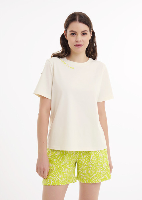 Clever Шорты женские для дома CLE LSH25-1168/2у горчичный/молочный