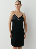 Сорочка ночная из хлопкового трикотажного полотна с эластаном, прямого силуэта на бретелях. Округлая горловина. По горловине и пройме окантовка Спереди по горловине бант.