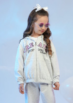 Толстовка на молнии с капюшоном. Впереди контрастная вставка с принтом. Выполнена из футера 3х нитка петля.