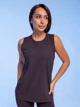 Майка для дома из трикотажного полотна. Средняя ширина бретели. Перед двойной с нефункциональной планкой на пуговицы. По горловине и пройме спинки внутренняя окантовка. По низу изделия притачной пояс на резинке.