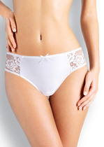 Трусы слипы женские из эластичного ажурного полотна с хлопковой ластовицей. Обработка краев по талии и ноге окантовочная резинка.