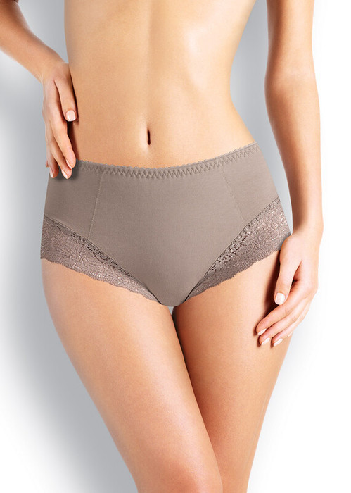 Трусы-макси утяжка женские из плотного эластичного хлопкового полотна. По переду отделка кружевом и двойной слой основного полотна. Обработка краев по талии - ажурной резинкой с фестоном, по ноге - окантовкой.