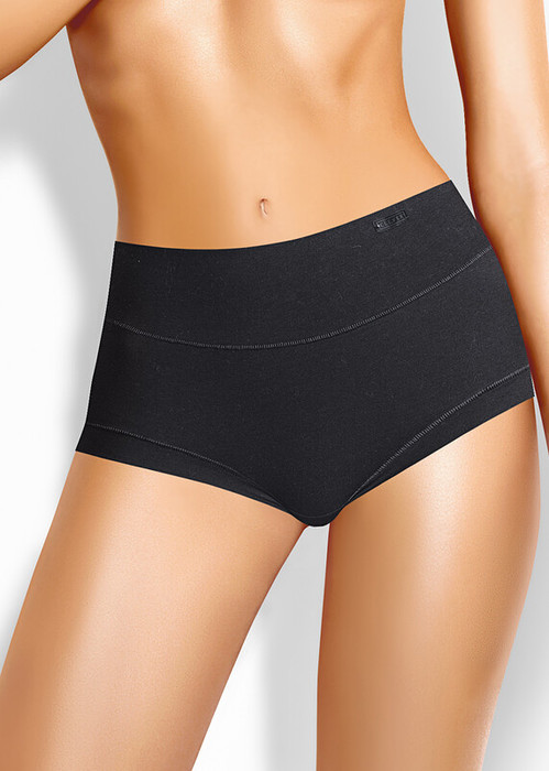 Трусы-макси женские из эластичного полотна с хлопком и модалом в составе. Двойная деталь переда. Обработка талии по спинке - окантовкой, по ноге - притачная бейка из основного полотна. Фирменный жаккардовый логотип.