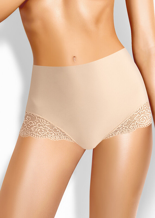 Бесшовные трусы макси комфортной посадки. По ножке настрочено широкое кружево.