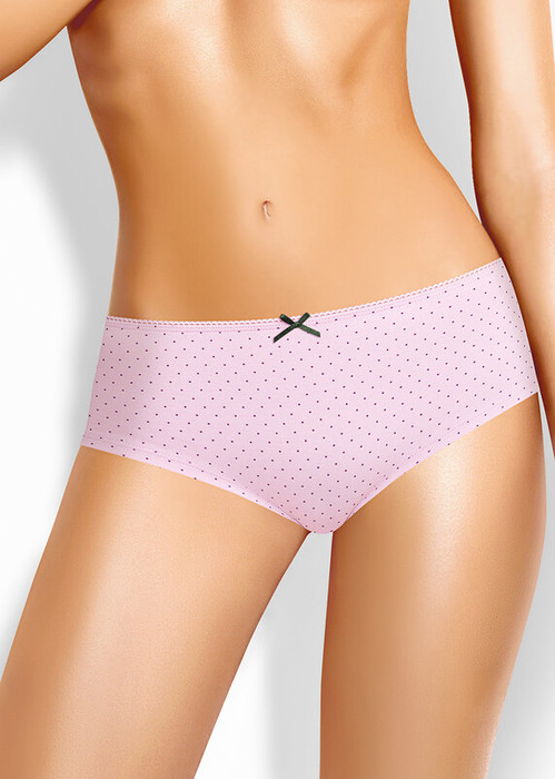 Трусы шорты женские из эластичного хлопкового полотна. Обработка краев по талии - ажурная резинка, по ноге - подгибка. По переду атласный бант.