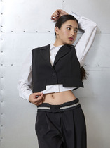 Жилет из джерси полуприлегающего силуэта, имеет английский воротник. Аккуратная баска гармонирует с вырезом горловины. Модель подходит для девочек с разными типами фигур. По линии втачивания баски, дополнена поясом на кольцах и этой же ткани.