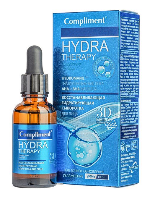 Гидратирующий эффект достигается комплексом Hydroмanil ТМ. С помощью 3D Matrix технологии увлажняющий эффект в коже увеличивается на +31% в течении 30минут после нанесения сыворотки.