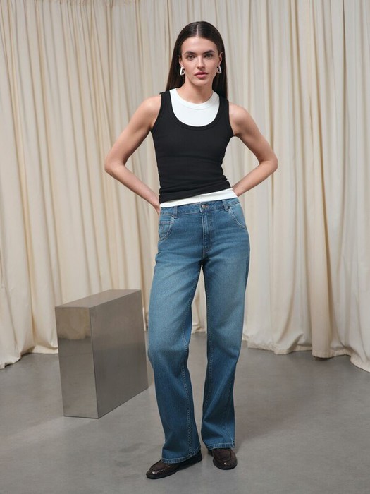 — Conte Актуальная коллекция CONTE CON-812 Синие джинсы straight с эффектом потёрт