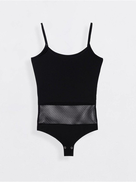 Стильное боди с тонкими бретелями выполнено в классических цветах женского бельевого гардероба. Высокое содержание хлопка с добавлением нитей эластана подарит вам легкость на протяжении всего дня и безупречную облегающую посадку по фигуре. Вы оцените оригинальную вставку из трендового отделочного полотна "сетка".