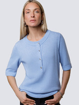 Vilatte Джемпер тонкой вязки из хлопка с кашемиром D39.348 голубой меланж
