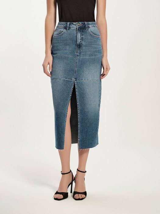 Джинсовую юбку-midi из eco-friendly денима вы легко сможете интегрировать в различные casual-образы. Разрез спереди, необработанный край, поперечный шов – все эти детали придают модели эффектный и уникальный вид.