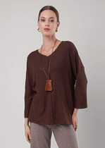 Vilatte Джемпер с прозрачными рукавами D29.278 коричневый-бежевый змея