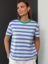 09.04 Vilatte Футболка из премиального хлопка с эластаном D49.989 белый-васильк