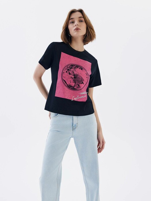 Свободная футболка с принтом из премиального хлопка с эластаном