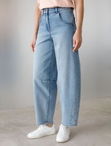 Ультракомфортные MOM джинсы - это прекрасная альтернатива бойфрендам и новый тренд сезона Весна-лето. Свободный крой, высокая посадка, никаких ограничений в движениях, грамотно расставленные визуальные акценты на талии и бедрах сделают эти джинсы настоящей находкой для вашего гардероба. Джинсы выполнены из легкого хлопкового денима с нитями эластана, благодаря чему модель износоустойчива и хорошо держит форму. Модель относится к eco-friendly вещам. Экологичная технология производства джинсов подразумевает минимальное использование химикатов, значительное сокращение потребления воды (до 70%) и электроэнергии.