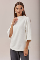 "Элегантность и комфорт джемпера объемного силуэта с отложным воротом-стойкой поможет вам чувствоваться себя уютно везде: прогуливаясь в парке, на встрече с друзьями или на работе. Модель отлично сочетается с джинсами, брюками и юбками-midi.