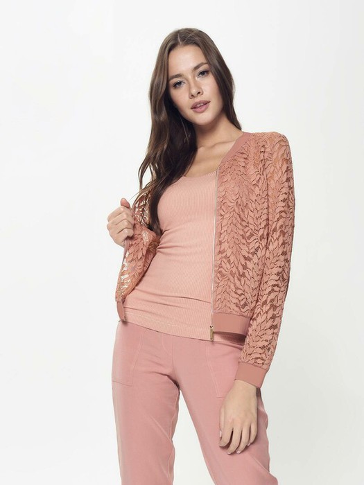 Кружевной бомбер с металлической молнией станет незаменимой вещью в весенне-летнем гардеробе девушки. Модница оценит трендовое объемное кружево с растительным мотивом. Бомбер безупречно сидит по фигуре благодаря облегающим манжетам и эластичному поясу.
