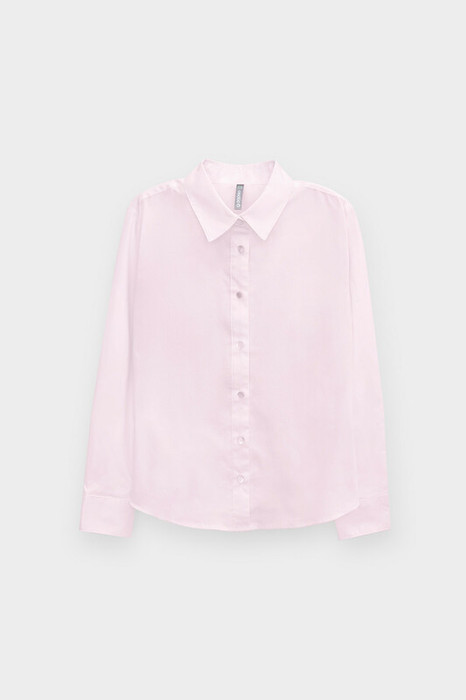 Классическая блузка для девочки с отложным воротником. Застегивается спереди на планку с пуговицами. Длинные втачанные рукава с манжетами регулируются по ширине.