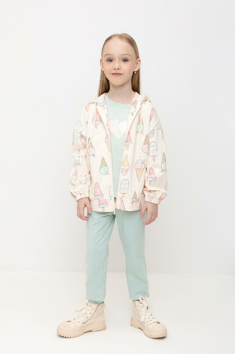 Трикотажные брюки для девочки из петельчатого футера. Эластичный пояс на резинке регулируется по ширине с помощью шнурка, по бокам два удобных кармана, внизу эластичные манжеты.