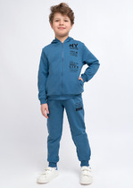 Трикотажные брюки для мальчика из петельчатого футера. Эластичный пояс на резинке регулируется по ширине с помощью шнурка, по бокам два удобных кармана, внизу эластичные манжеты.