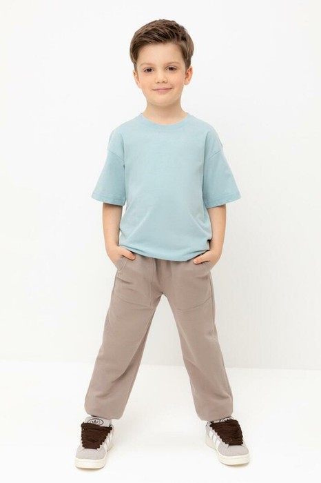 Брюки для мальчика из мягкого петельчатого трикотажа. Эластичный пояс на резинке регулируется по ширине с помощью шнурка. По бокам два удобных накладных кармана. Внизу эластичные манжеты.