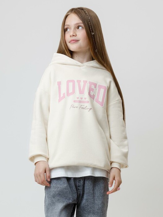 Худи с капюшоном для девочки из тёплого футера с начёсом. В составе 80% натурального хлопка и 20% полиэстера, при этом полиэстер ввязан внутрь по особой технологии и не соприкасается с кожей. Модель оверсайз. Пояс и манжеты выполнены из мягкого эластичного трикотажа. Худи сохраняет форму и стойкий цвет после многочисленных стирок и идеально подходит на каждый день. Оригинальный принт выполнен из стойких текстильных гипоаллергенных красителей. Все трикотажные полотна производятся в соответствии с нормами швейцарского сертификата ЭкоТекс.