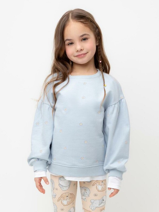 Crockid джемпер (свитшот) для дев КР 302710/голубой,любимые ромашки к563