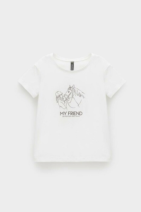 Футболка для девочки из высококачественного трикотажного полотна. Оригинальный принт выполнен из стойких текстильных гипоаллергенных красителей. Для удобства предусмотрена застежка на 2 кнопки в размерах 92 и 98.