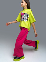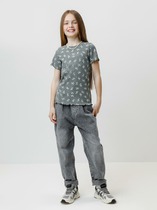 Футболка для девочки из эластичного трикотажа в рубчик. Оригинальный рисунок выполнен из стойких текстильных гипоаллергенных красителей. Изделие сохраняет цвет и форму после многократных стирок. Все трикотажные полотна производятся в соответствии с нормами швейцарского сертификата ЭкоТекс.