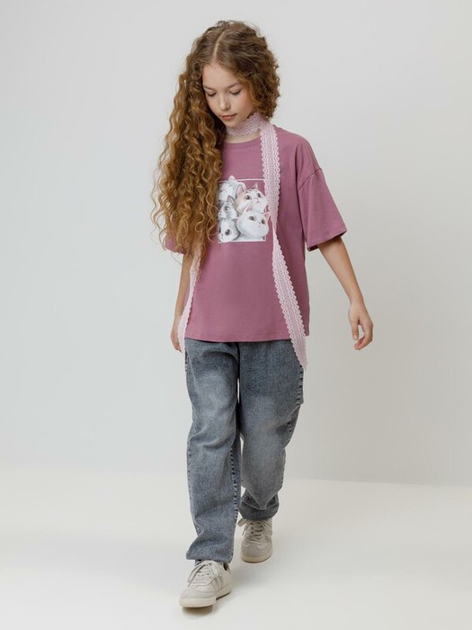 Футболка для девочки из гладкого трикотажа, произведённого из высококачественного натурального хлопка. Оригинальный принт выполнен из стойких текстильных гипоаллергенных красителей. Изделие сохраняет цвет и форму после многократных стирок. Все трикотажные полотна производятся в соответствии с нормами швейцарского сертификата ЭкоТекс.